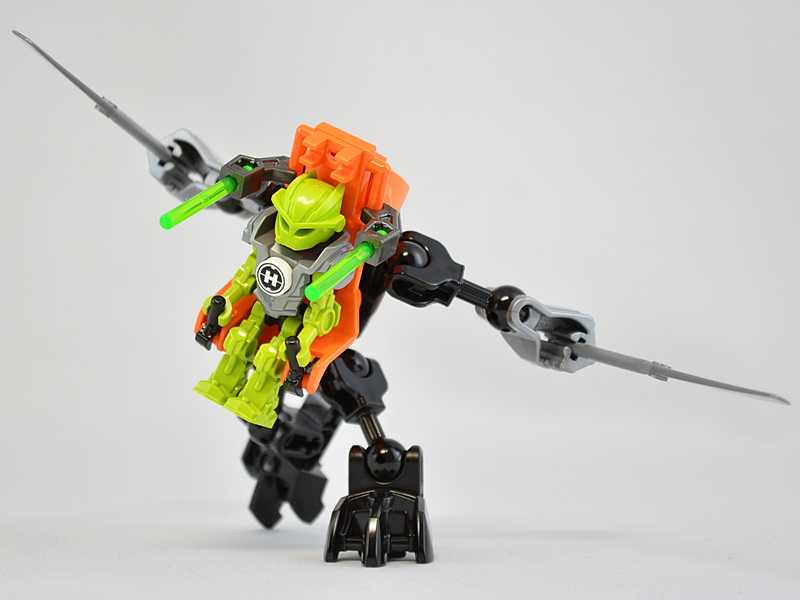 座席から背面にかけてのパーツの配置がシンプルながら上手く出来ており、プロモセットながら”ヒーローファクトリー式の組み方”を体験できて良いですね。