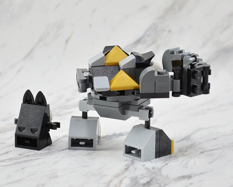 右肩はヒンジ、左肩はクリップ、股間節はミニボールジョイント接続になっているほか、巨大な右手の指は個別にクリップで接続されておりそれぞれ可動します。