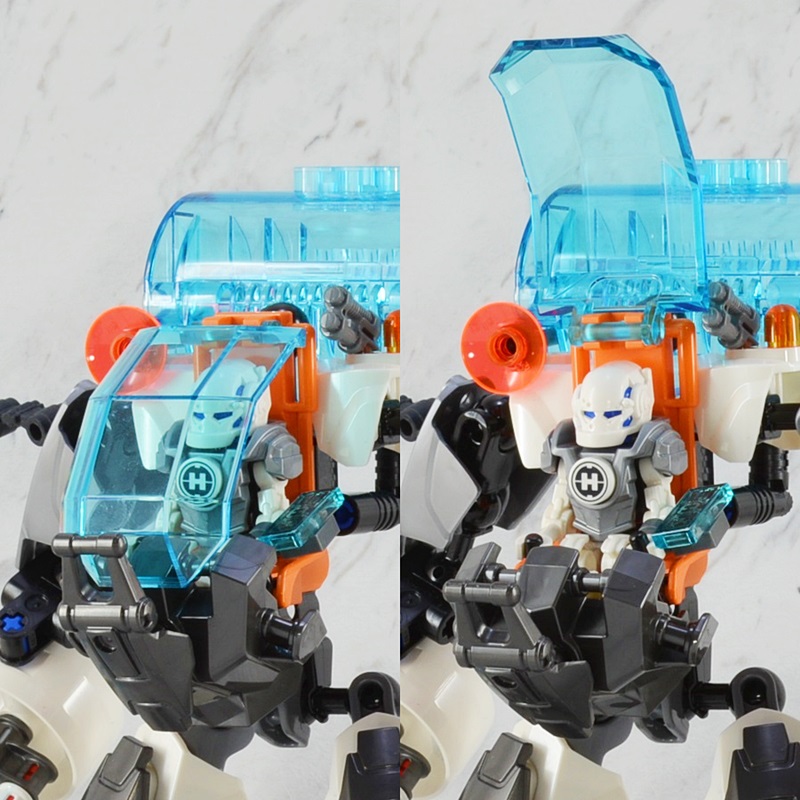 キャノピーは開閉可能で、画像だと見えずらいですが操縦桿も可動します。キャノピー下のアーマーパーツが他のマシーンよりも大型なためフィグの足元がスッポリと収まるのが良いですね。