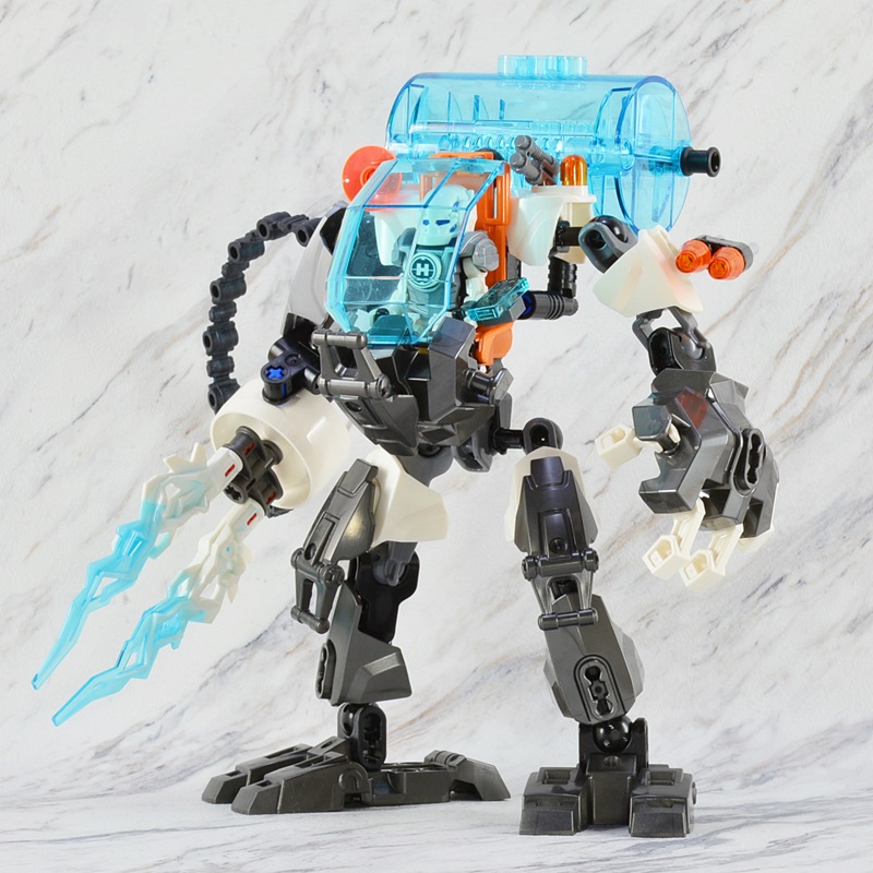 マシーンの全高はヒーローのミニフィグの3~4倍くらいあります。ミニフィグを1.8mと仮定するとマシーンは5~7mくらいになりますかね。ヒーローのフィグは普通のミニフィグよりも大きめなので普通のミニフィグを基準にするともっと大きいかも?