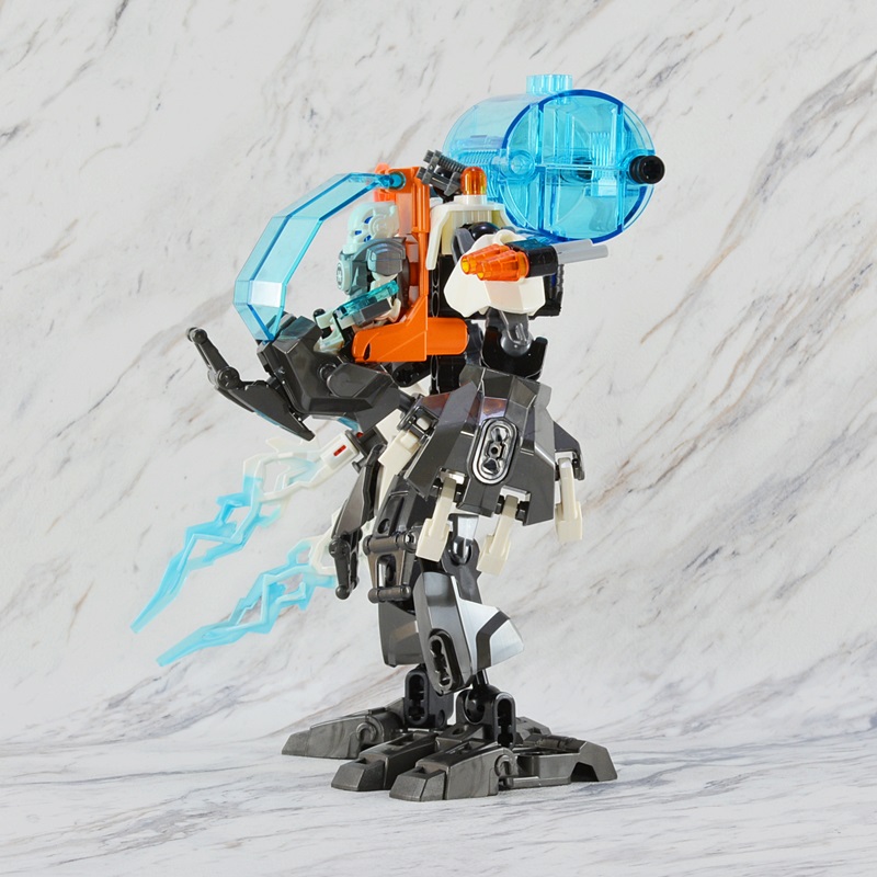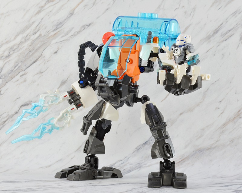 白とガンメタル得尾基調とした色合いもシックで「パワードスーツに派手な色はちょっと・・・」という向きにも受け入れやすいかなと思います。右腕のアイスブラスターを普通の砲に改造するだけだけで結構シブいメカに生まれ変わりそうです。