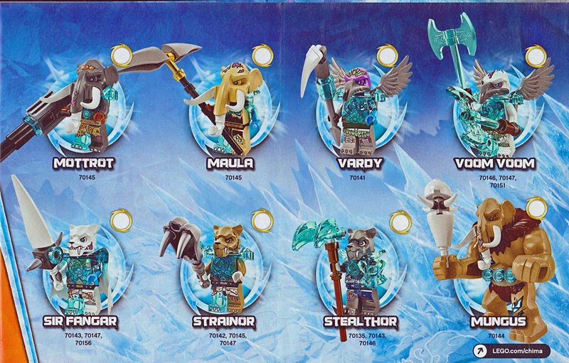この6体に加えてパンサーがビルダブルフィギュアとして発売されますが、何故かヒョウ族の中でもパンサーだけミニフィグとしての発売がアナウンスされておらずちょっと謎です。(そもそもチ・アップ後の姿のみで登場するキャラクターであるという可能性もありますが)