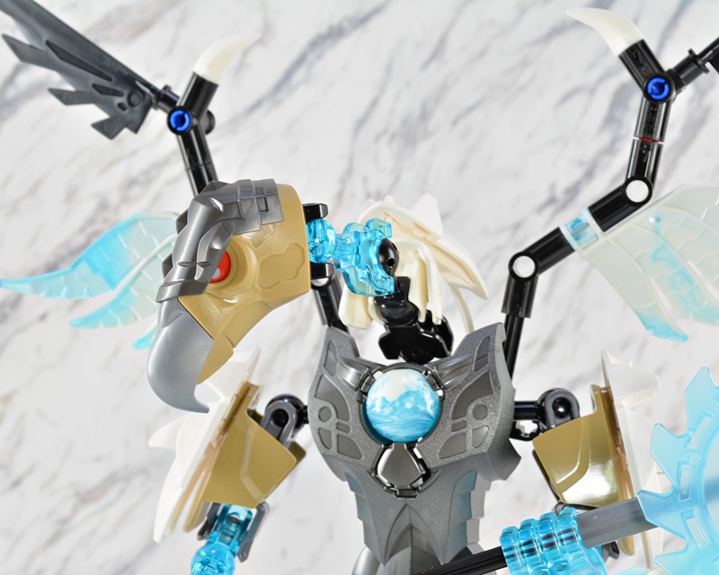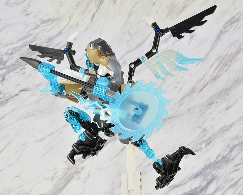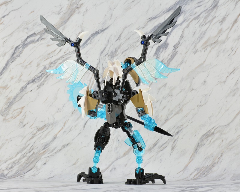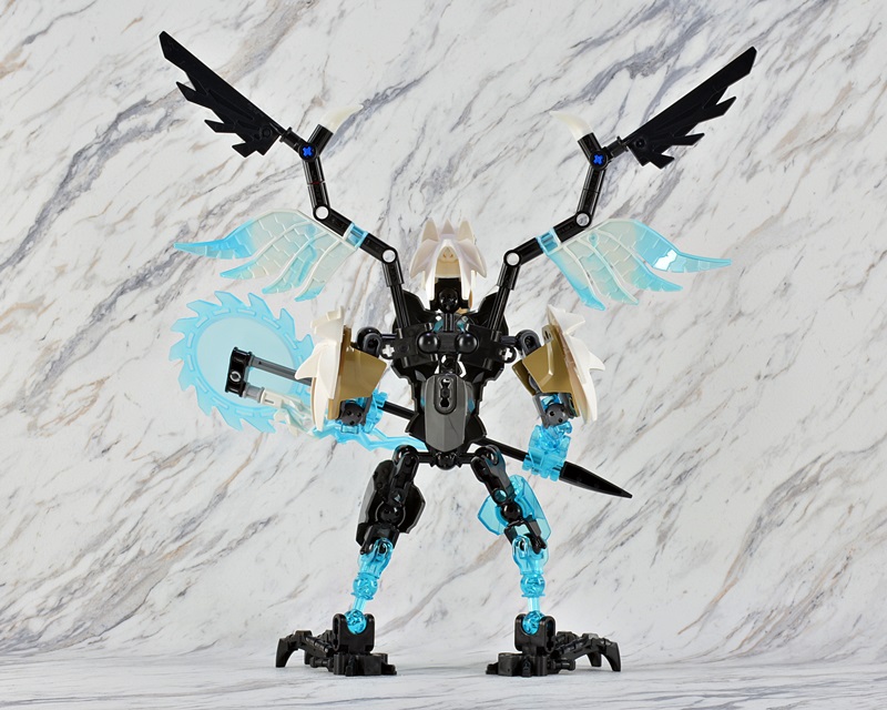 特徴的な大きな翼はこれまでにない独特な構成で、同じく翼をもつバットマン、エリス、ラザールとは異なるアングルコネクタを多用したパターンで作られています。