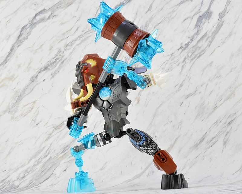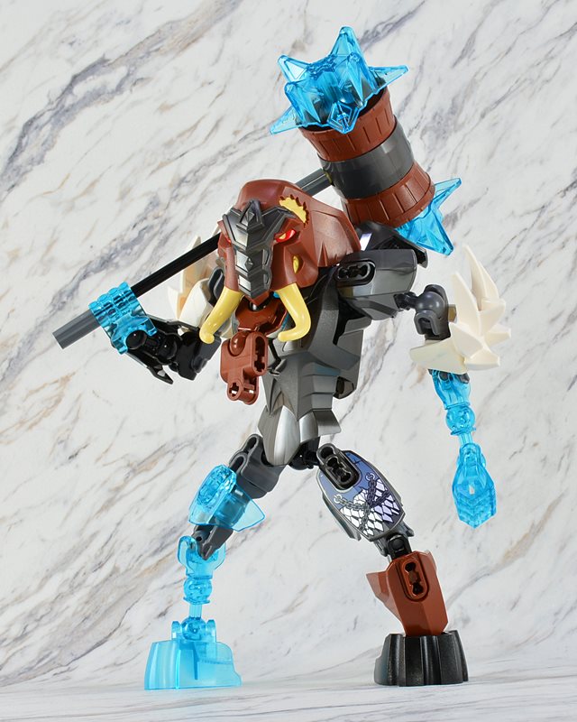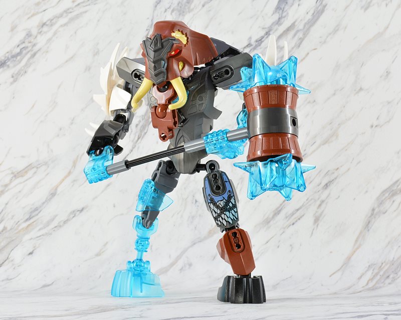 ミニフィグ版だと通常のフィグの倍以上の巨漢ですが、ビルダブルフィギュア版は他のアニマル戦士と同じサイズで、腰の3連になった「チ」の球もありません。