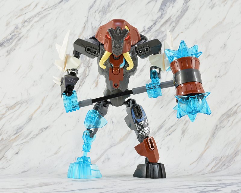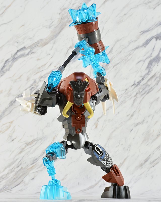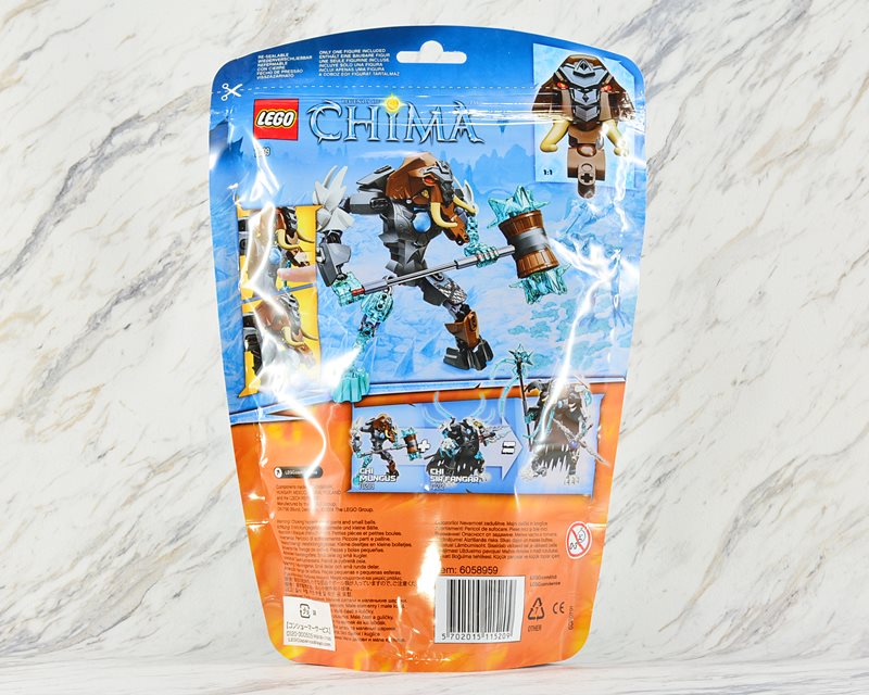 マンモス族のリーダー、マンガスが「チ」でパワーアップしたぞ! マンガスは氷の息をはき、相手の体をしんからこおらせてしまうのだ。「チ」の機能を作動して、チェスト・アーマーから「チ」の球を飛び出させよう。強力な手足を動かして戦闘ポーズをとらせよう。巨大アイスマレットで攻撃開始だ。最強のマンモスはかなり手ごわいぞ!