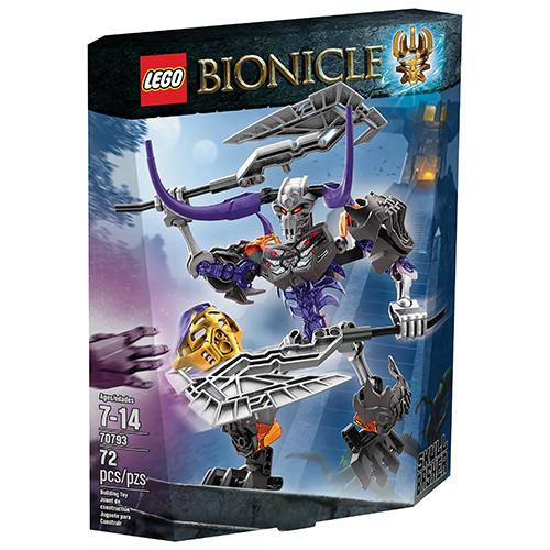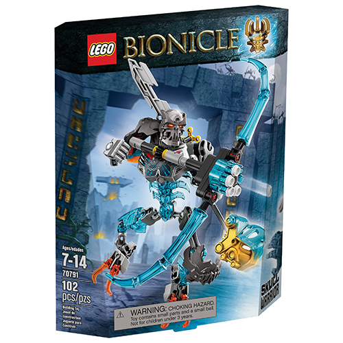 古代都市への侵入者をレゴ バイオニクルの猛烈なスカルウォリアーで凍てつかせろ!この戦士は弾丸を6連射する巨大な『フリーズボウ・ラピッドシューター』でトーア達を跳ね除ける事ができる。このフィギュアは、特徴的スカルマスクとポップオフ用トリガー。侵入者を倒すフックブレードとバトルギミックを備えている。