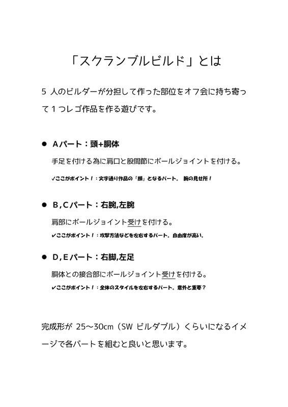 各人が作った部位を持ち寄って1つの作品を完成させるイベントをやりたいと思います。