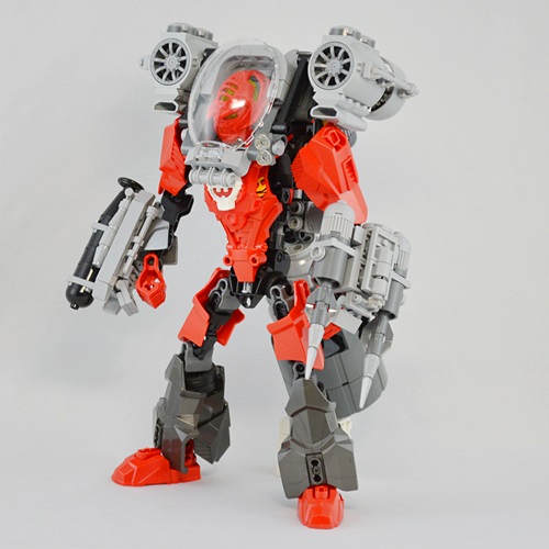 フィグ乗りのレゴロボはスタイルを保つために1人乗りが殆どですが、実際に戦うにあたっては複数人で操縦した方が効率がいい(=強い)に決まっているので「複座式だけどカッコいいロボを作ってやろう!」と意気込んで作ったのがこのロボです。