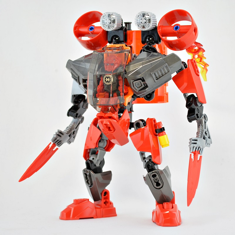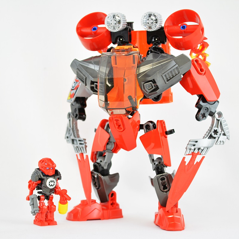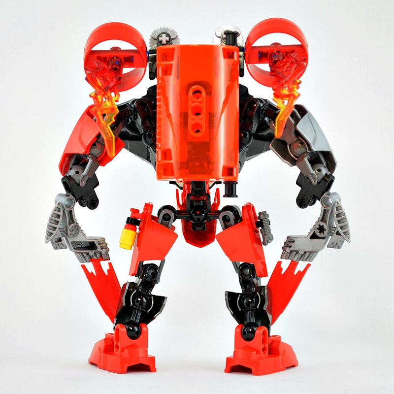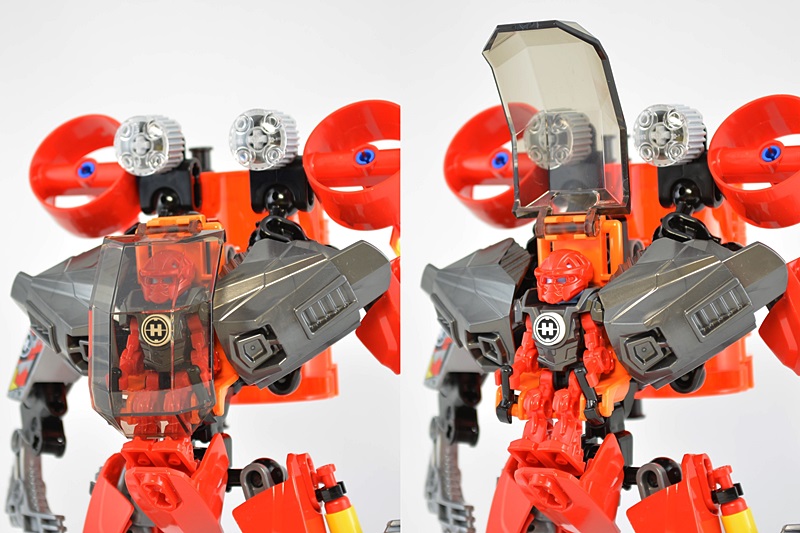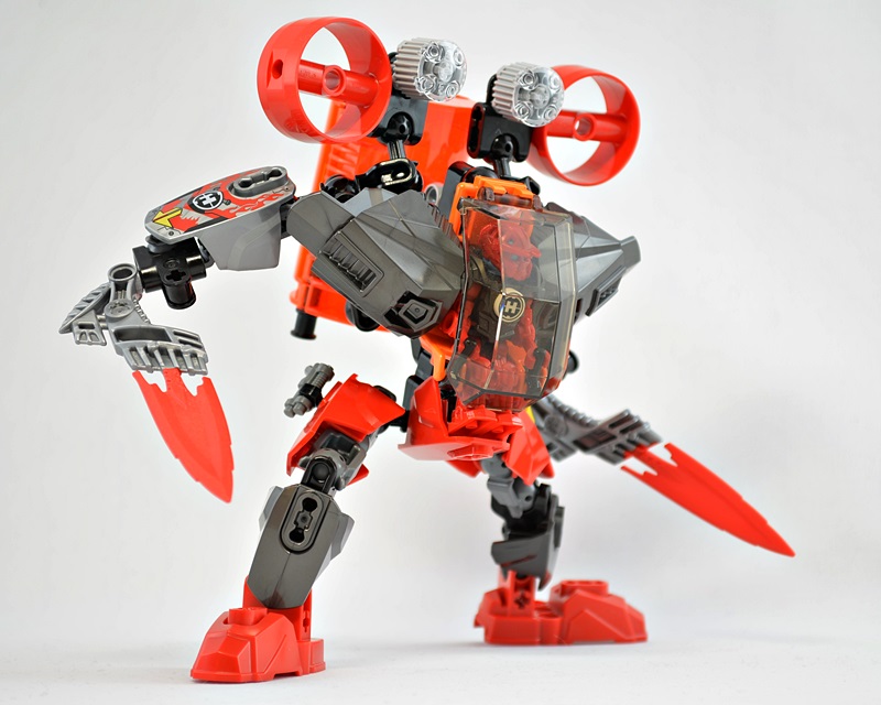 マシーンの全高はファーノのミニフィグの3~4倍くらいあります。ミニフィグを1.8mと仮定するとマシーンは5~7mくらいになりますかね。(普通のミニフィグを基準にするともっと大きいかも)