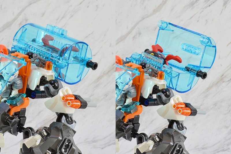 キャノピーは開閉可能で、画像だと見えずらいですが操縦桿も可動します。キャノピー下のアーマーパーツが他のマシーンよりも大型なためフィグの足元がスッポリと収まるのが良いですね。