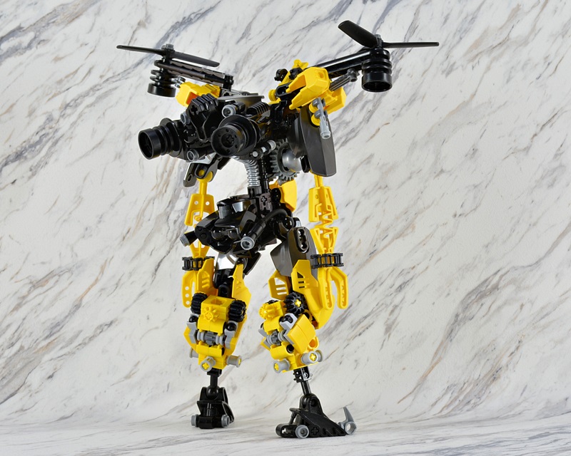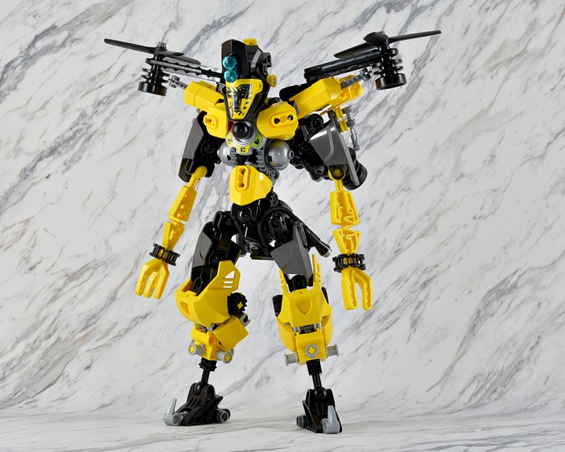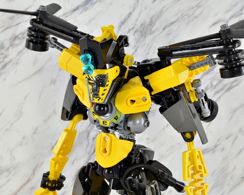 北米版での「ジェット」という名前の割に、元セットはプロペラ推進オンリーなデザインだったので背部にジェットエンジンを盛ってみました。実は上半身にヒーローファクトリーの胴体フレームが水平方向に入っており、背部に迫り出したジェットエンジンはフレームの飛び出した部分を隠す目的もあたったりします。
