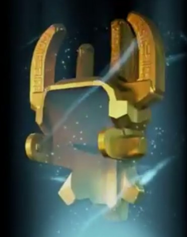 類似するジョイントを備えたものにナイトキングダムⅡ(のラージフィギュアシリーズ)の兜があり、恐らく同様のギミックを備えているものと思います。ナイトキングダムⅡも初期のバイオニクルのように腕にスイングギミックを備えており、相手のマスクを引っぺがす事で戦わせるシリーズで、頭部に類似するギミックがあるという事は、ボディにバトルギミックを備えている可能性が高い気がします。