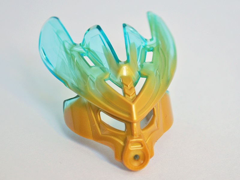 『創造のマスク / Mask of Creation』は新バイオニクル最大のキーアイテムの1つだけあって、かなり細やかな造形がなされています。角や頬に彫られた古代文字もしっかりと再現されており旧シリーズのアボーキー(光のマスク)やイグニカ(生命のマスク)にも劣らぬ威厳が感じられます。