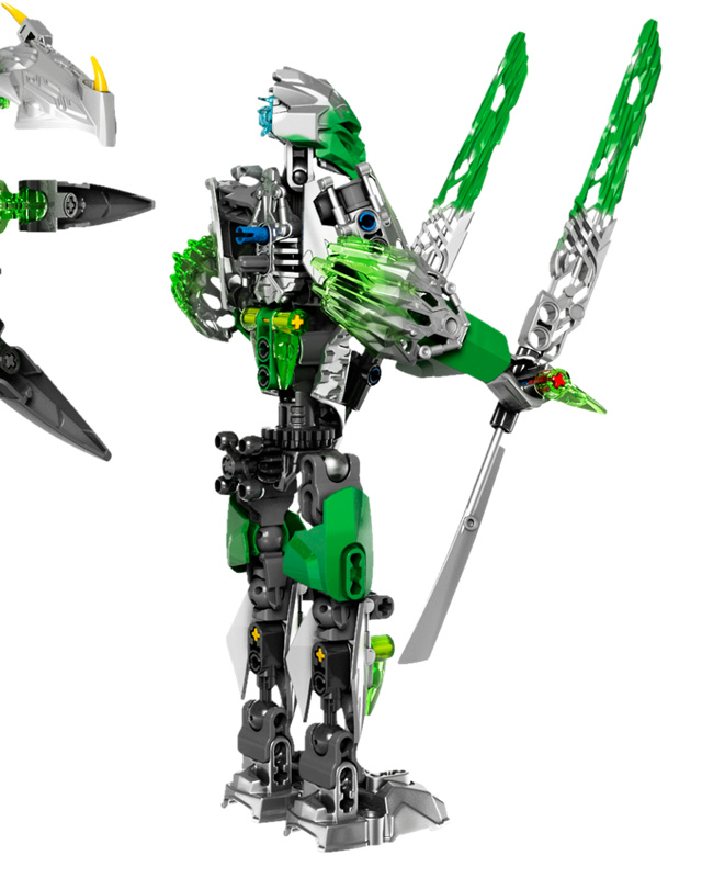 密林のクリーチャーは同じく飛行系の炎のクリーチャーよりもやや虫っぽいデザイン。新型のブレードとシステム(普通のレゴ)系で良く見るヒンジ付きパネルを使った翼はトンボのような雰囲気ですね。